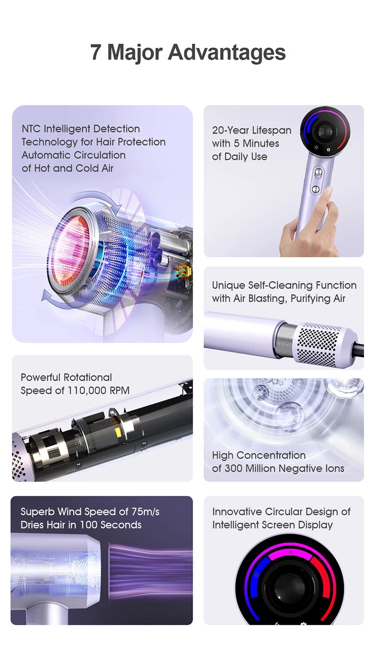 Brand 110000 Rpm High Speed Bldc Brushless Hair Brush Ionic Hair Dryer